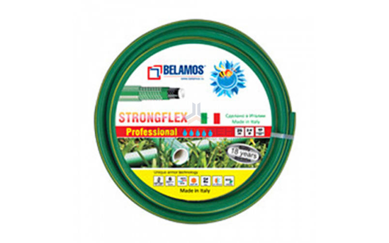 Эксклюзивный высокопрочный армированный шланг Belamos Strongflex 3/4" зеленого цвета, внутренний слой белый, 6 слоев. Особая двойная армировка шланга.ОСОБЕННОСТИ УСТРОЙСТВА:• Долговечность;• Прочность, устойчивость к истиранию и на разрыв;• Специальная армировка не позволяет шлангу скручиваться;• Не перегибается, не переламывается;• Остаётся гибким при низких температурах;• Материал шланга без содержания кадмия, бария — безопасен для окружающей среды, человека, растений;• Не гниет, не преет, не сохнет, не боится солнечной радиации, не выцветает;• Технология диагональной армировки и армировка «чулком»;• Изготовлен из первичного пластика.• Рабочая температура от -10 до +60 °С.• Гарантированный срок службы 18 лет.