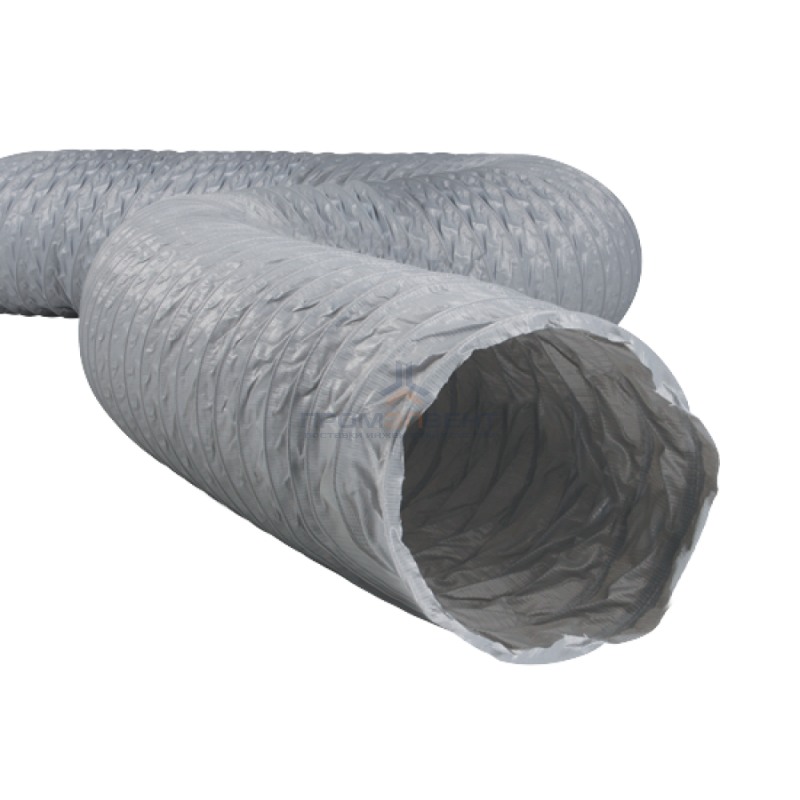PVCAFS - неизолированный воздуховод гибкий пвх, производится из слоёв поливинилхлорида, покрыт специальным волокном (полиэстер), имеет спиральный каркас из высокопрочной стальной проволоки, которая обладает повышенной жесткостью.