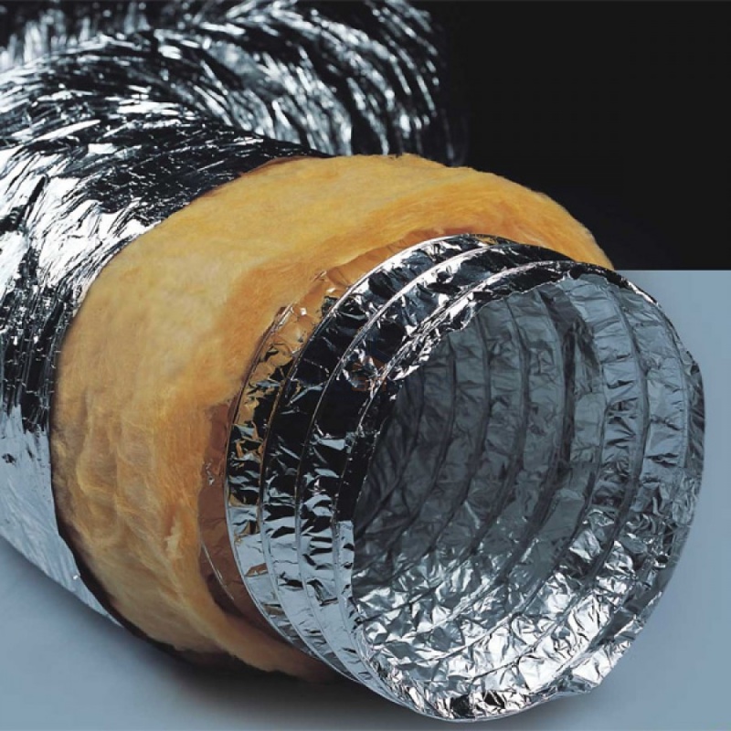 ISOAFS-POLY представляют собой теплоизолированные полиэстровые гибкие воздуховоды, выполненные из нескольких слоев полиэстера со спиральным каркасом из стальной проволоки, покрытые изоляцией из стекловолокна и металлизированного паронепроницаемого слоя.